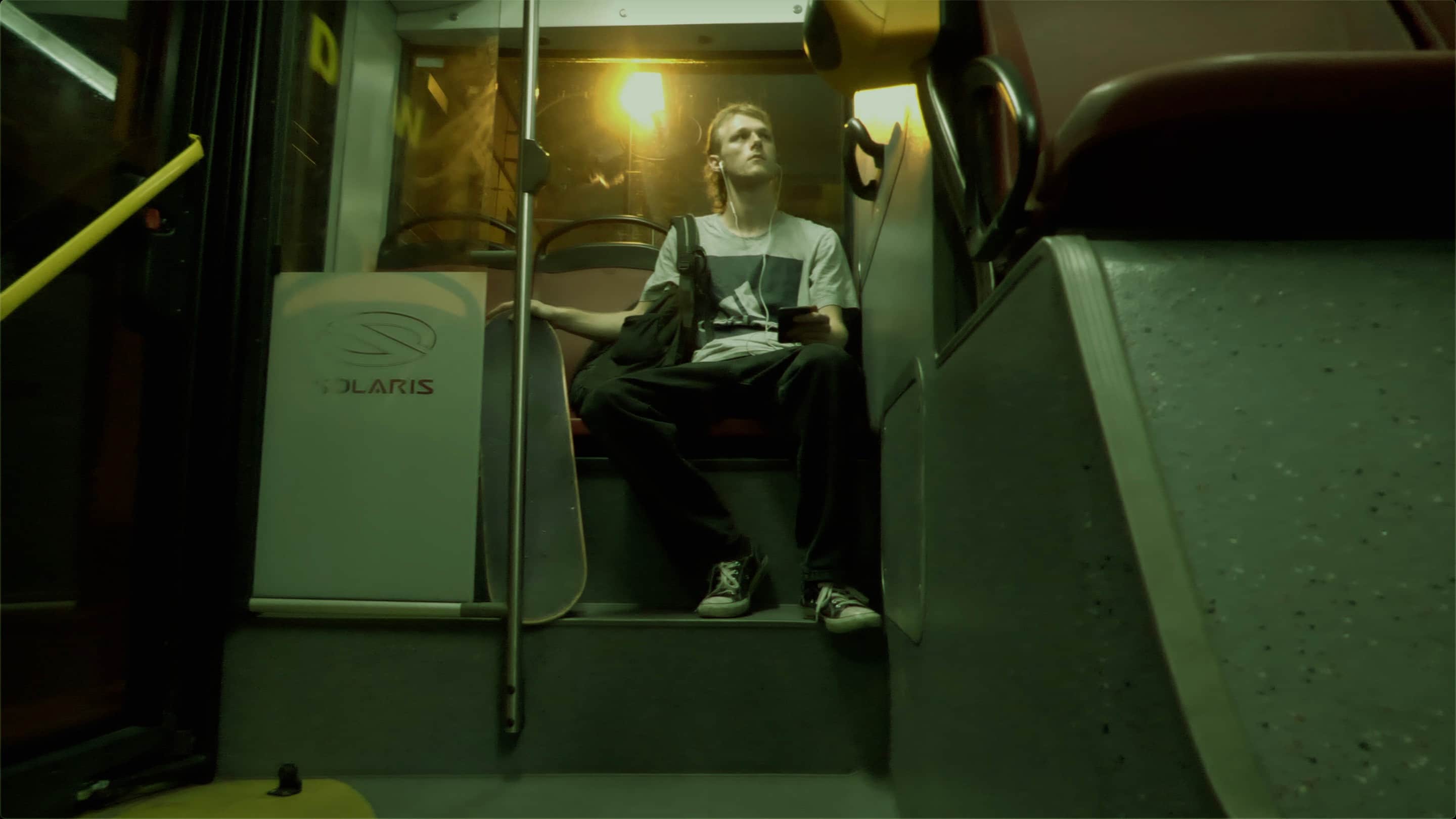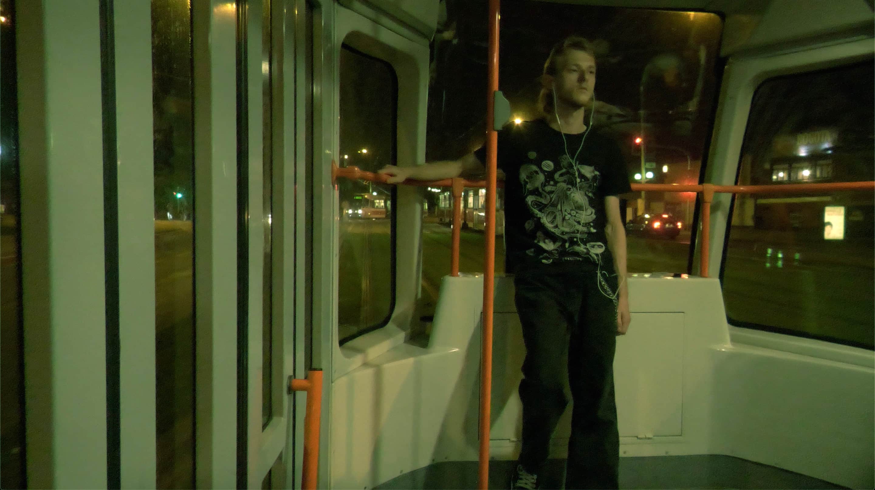 I therefore spent a good while searching for a fitting theme to shoot my short film and present both our label's artist's music and alternative culture while travelling on busses and trains at night. On one particularly long journey from Prague to Brno, I was almost home on the night N98 bus at around 3am, watching rows and rows of sodium lights pass by while listening to music, when I realised that this lifestyle I was living would in itself make a good theme for such a short film.